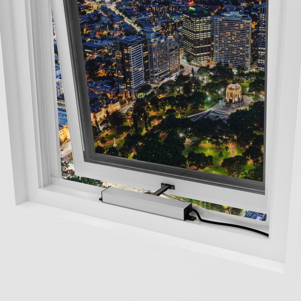 Small, single-chain electric winder with a 100mm chain projection. Suitable for lightweight awning windows up to 1500mm height, 1200mm width. Capable of pushing/pulling 250N force.
