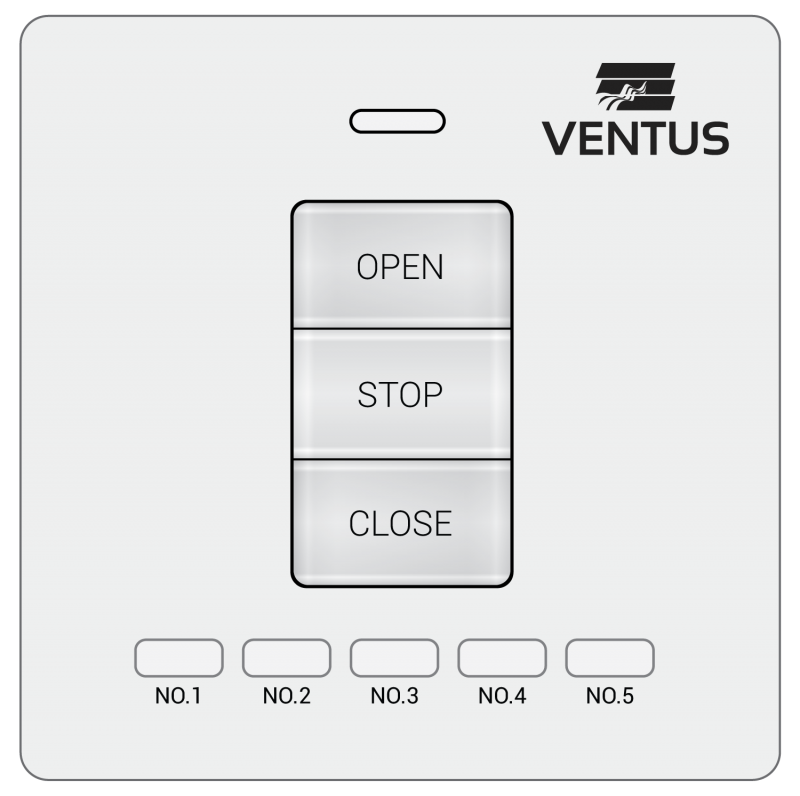 5-channel wireless wall-mounted switch, used for controlling multiple windows or chainwinders. Integrates with remotes.
